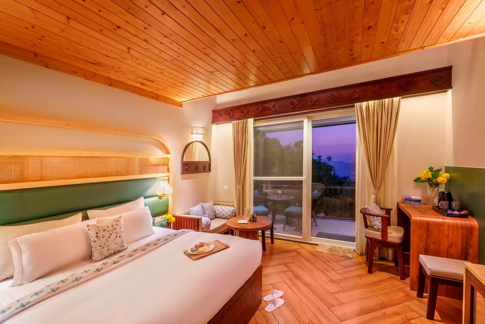 Enjoy unparalleled views of the tranquil Naukuchiatal Lake and majestic valleys.
